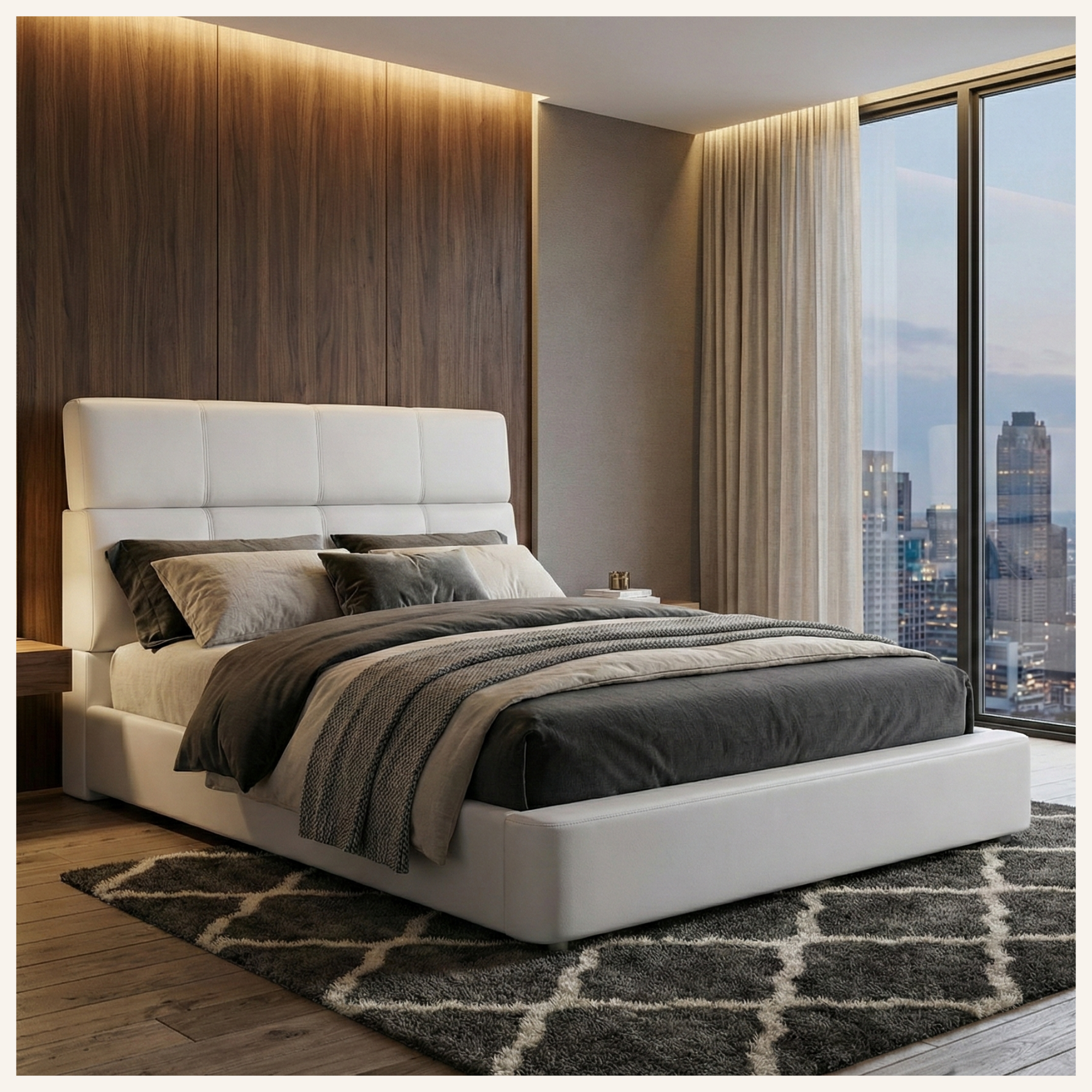 Pure form and balanced proportions for a serene, uncluttered bedroom.